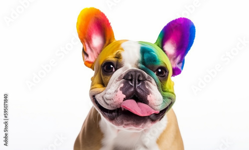 Cute dog with rainbow pride colors, on a white background. Generative Ai