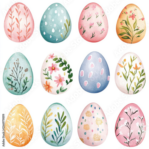Cute Easter eggs Clipart, Pastel Watercolor Spring colorful eggs, Boho Nursery Graphic Set,