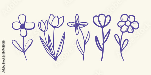Cute Floral Icon Collection in Simple Line Art Style for Decorative and Craft Projects. Vector art illustration isolated transparent background