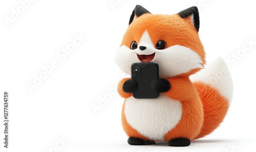 cute, fluffy, happy, orange, fox, talking, phone, smartphone, mobile, white, background, copy space, conversation, cyberspace, message, smart, business, communication, holding, isolated, portrait, space, technology, text message, animal, pet, fur, mammal, eye, pet, young, small, adorable, ear, toy, cartoon, illustration, fun, gift, funny, children, character, design, three-dimensional, wildlife, smile, playful, model