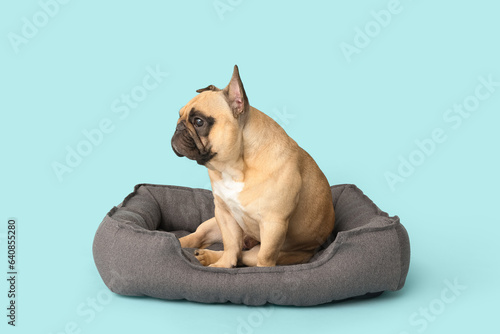 bed, blue, bulldog, cute, french, pet, adorable, animal, background, beautiful, beige, breed, canino, carnivore, colours, companion, dog, doggy, domestic, fauna, friends, funny, lovely, mammal, nature, pedigree, playful, portrait, purebred, relax, rest, sitting, small