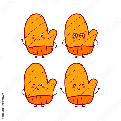Cute funny gloves character. Vector hand drawn cartoon mascot character illustration icon. Isolated on white background.