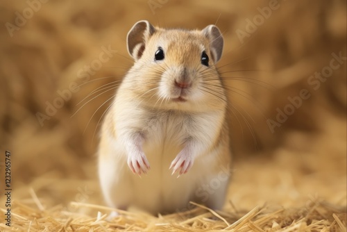 Cute Gerbil Pet - Bright Horizontal Image of a Male Rodent Indoors with High Contrast
