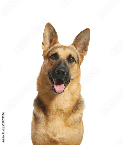 Cute German shepherd dog on white background. Lovely pet