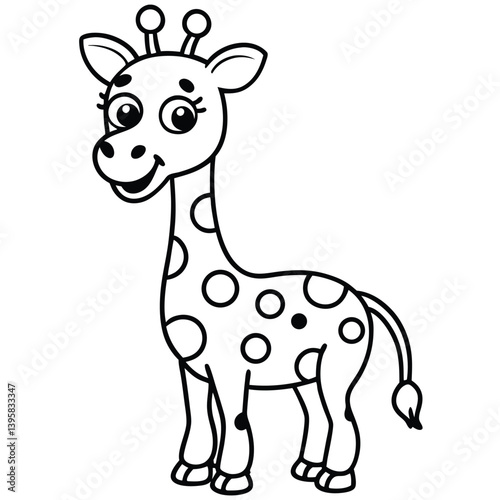 Cute giraffe cartoon, a happy mammal vector illustration of a wild animal