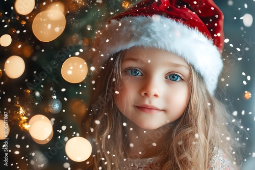 girl, children, santa, hat, christmas, light, bokeh, snow, winter, holiday, cute, adorable, happy, festive, cheerful, portrait, beautiful, eye, blond, hair, season, celebration, joy, magic, wonder, innocence, childhood, family, tradition, greeting, card, background, decoration, sparkle, glistering, warm, cosy, sweet, pretty, young, toddler, children, little, small, expression, face, smile, emotion, feeling