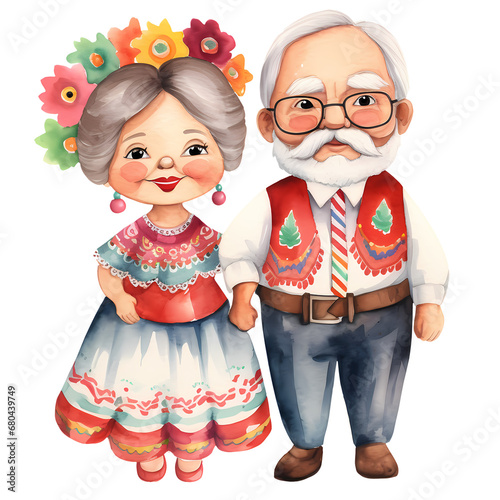 Cute Grandparents Mexican Watercolor Clipart Illustration
