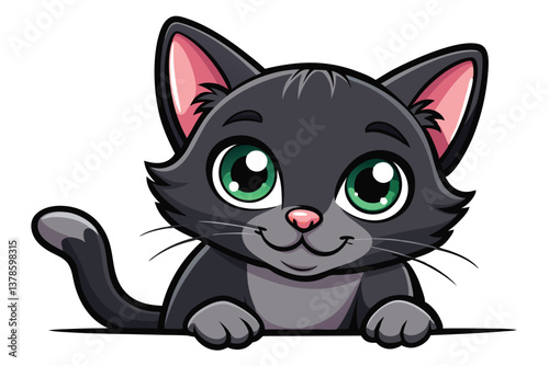 cat, kitten, cartoon, grey, green eye, transparent, animal, pet, felino, domestic, smile, whisker, tail, ear, pink nose, adorable, mascot, cheerful, friendly, playful, character, paw, comic, funny, animated, charming, lovable, curious, whimsical