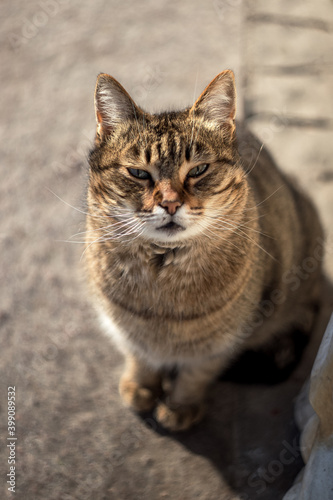 cat, grey, striped, kitten, animal, background, sunny, beautiful, sitting, squinting, sun, eye, cute, pretty, funny, affectionate, shy, sea, embankment, sevastopol, balaclava, pier, walk, pet, home, care, sunny day, winter, closeup, fluffy, wool, cat eyes, face, happy, life, nature, portrait, street, sweet, young