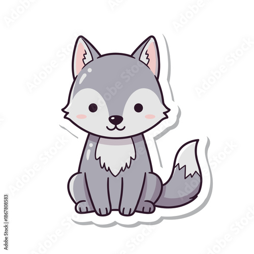 Cute Gray Wolf Sticker Illustration Adorable Cartoon Character.
