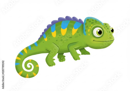 reptile, chameleon, lizzard, green, blue, yellow, cartoon, illustration, animal, wildlife, nature, cute, friendly, funny, adorable, character, design, artwork, graphic, image, drawing, painting, digital artwork, colourful, vibrant, bright, scaled, tail, eye, leg, foot, skin, texture, creature, exotic, tropical, fauna, vertebrate, amphibian, cold-blooded, camouflage, unique, whimsical, playful, happy, mascot, icon, symbol