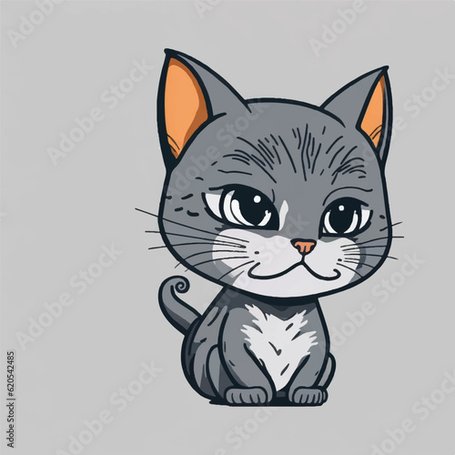 cute grey cat cartoon, vector, illustration, white background