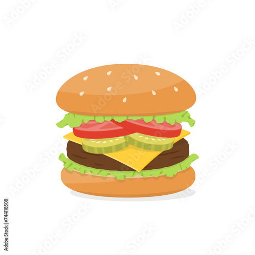 hamburger, cheeseburger, food, fast food, meal, sandwich, bread, patty, cheese, tomatoes, lettuce, delicious, lunch, brunch, snack, mouth-watering, appetising, eatable, edible, vector, illustration, background, thumbnail, art deco, decoration, display, greeting card, card, banner, poster, postcard, advertising, concept, element, burger, beef, bun, meat, isolated, tasty