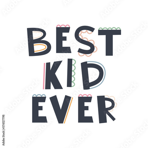 Cute hand drawn phrase Best Kids Ever in boho style. Cartoon doodle print for nursery. Design for shower invitation card, birthday, children's party, book cover, poster