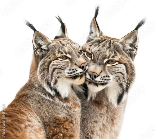 lynx, predator, big cat, bobcat, wildcat, isolated, family, couple, 2, group, transparent, carnivore, felino, cat, mammal, snow, wild, cute, species, coat, pose, portrait, full body, studio, white background, head, animal