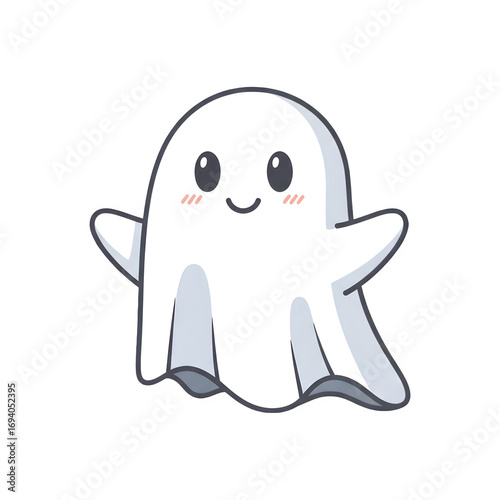 Cute Kawaii Ghost with Smiling Face – Halloween Character, Cartoon Design, High-Resolution Graphic, Transparent PNG Overlay