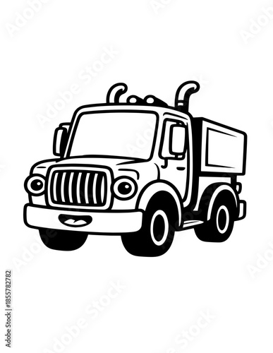 Cute kids style drawing doodle outline city transport for kid coloring books. Childish sketchy linear public city transport, car, truck for children educational or fun app or book, sticker, logo