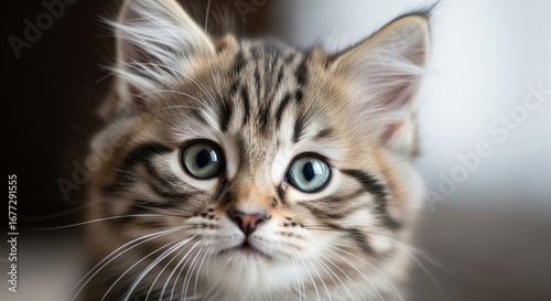 kitten, cat, animal, pet, cute, adorable, closeup, eye, fur, striped, domestic, mammal, young, portrait, small, wildlife, brown, cream, light, blue, soft, domesticated, face, looking, vertical, image, photo, close, up, studio, indoor, adoption
