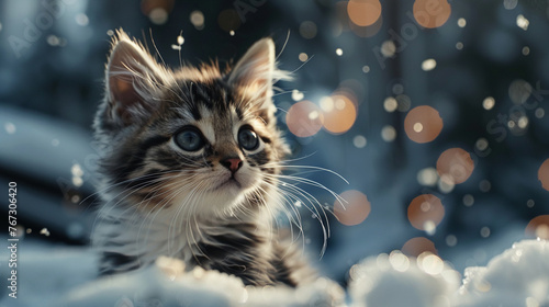Cute kitten sitting outdoors, AI Generative.