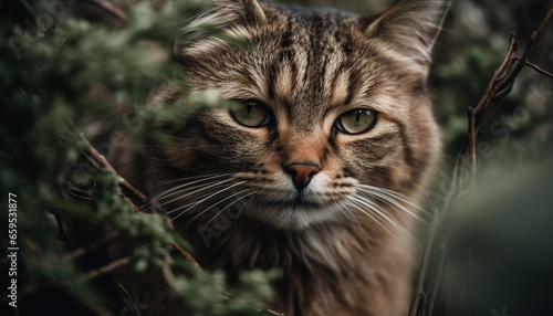 Cute kitten staring at camera, playful and curious in nature generated by AI