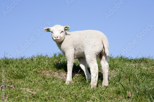 agriculture, animal, cute, dike, dutch, farm, field, grass, green, sky, holland, lamb, farm animal, mammal, meadow, nature, holland, new life, nobody, sheep, spring, tender, white, young