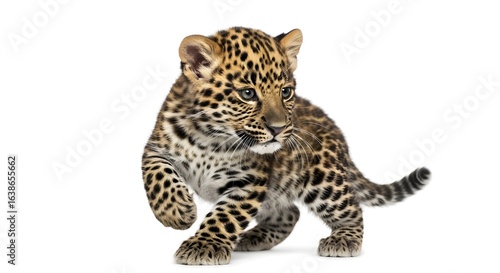 Cute Leopard Cub Running on White Background