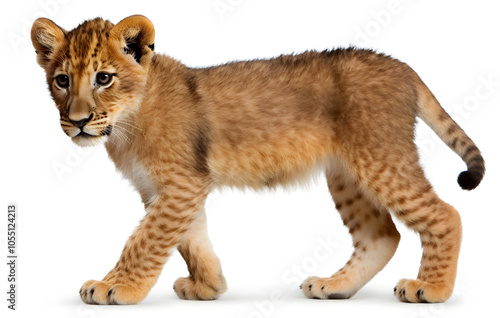 Cute lion cub on white background