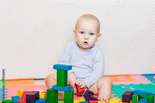 Cute little baby playing with colorful toys