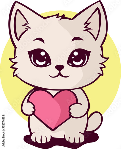 Cute Little Cat Holding Love Symbol Cartoon Illustration