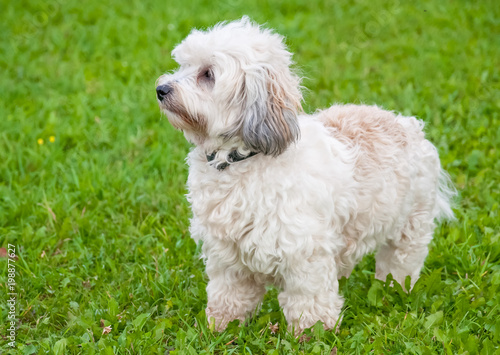 puppy, dog, bichon, small, cute, grooming, family, white, grass, pet, nature, poodle, green, portrait, brown, male, animal, body, mammal, friendly, canino, many-coloured, pedigree, obedience, bred, sweetly, summer, sitting, domestic, spring, funny, soft