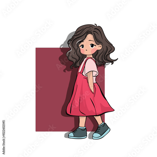 Cute little girl cartoon character Chibi vector illustration. Isolated white background