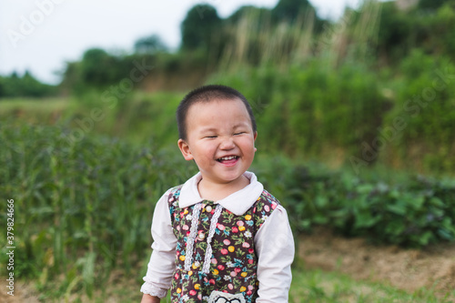 Cute little girl playing in the field