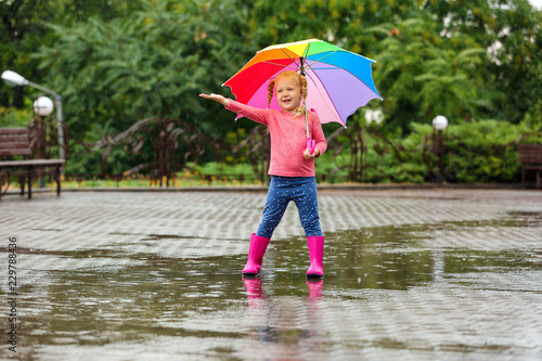 accessory, autumn, background, beautiful, boot, bright, caucasian, children, childhood, climate, cold, colours, cute, design, cloudburst, dripped, fashion, fresh, fun, girl, happy, children, little, material, many-coloured, nature, outdoors, park, person, portrait, protection, rain, rainbow, raindrop, rainy, rubber, season, smiling, spring, storm, street, stylish, summer, thunderstorm, umbrella, water, waterproof, weather, wet