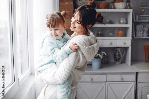 Cute little girl with mother. Family at home. Mother with daughter in a room