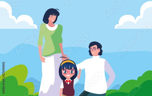 student, little, girl, school, daughter, landscape, nature, sky, cloud, bush, education, schoolbag, happy, uniform, study, mother, father, family, love, support, guide, learning, eyeglass, small, female, cute, design, vector, illustration, mother, father, childhood, cognition, person, concept, smile, learn, youth, beautiful, cheerful, lesson, class, fun, pretty, team, character, avatar, elementary