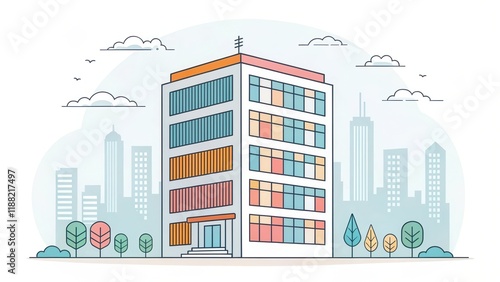 cute, office, building, city, scape, illustration, background, house, town, architecture, urban, city landscape, home, design, street, icon, cartoon, building, construction, landscape, estate, skyline, sky, business, art, real, skyscraper