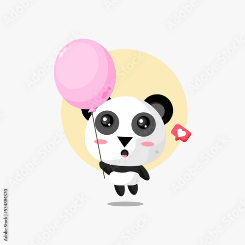 Cute panda floating with balloon illustration