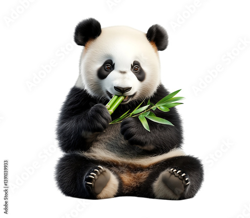 Cute Panda Sitting eating bamboo - An adorable panda sitting with a playful pose on transparent background. Perfect for children’s design and educational content