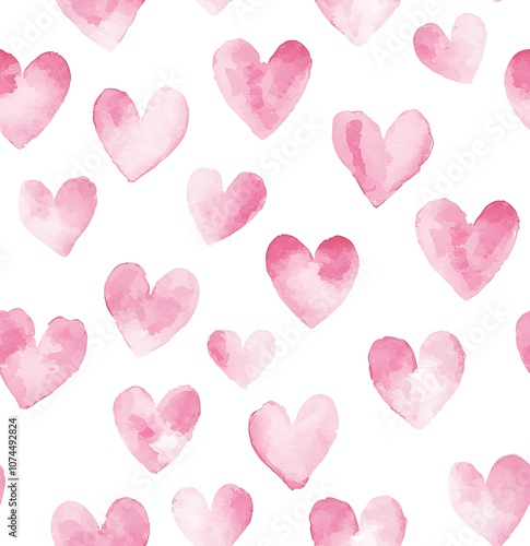 Cute pink heart seamless pattern, watercolor