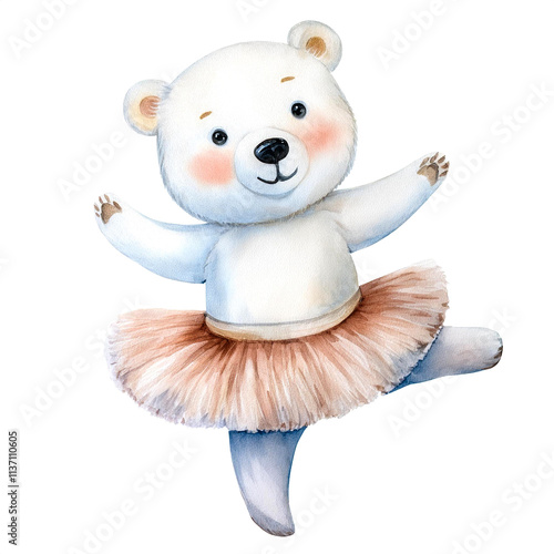 かわいい白熊のバレリーナのぬいぐるみ(Cute polar bear ballerina stuffed animal watercolor painting)
