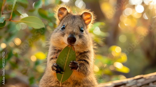 Cute Quokka Holding a Leaf in its Paws Realistic Image