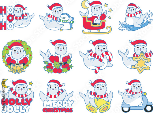 seal, animal, summer, sticker, ice, sea, ocean, life, santa, christmas eve, christmas tree, decoration, happy, funny, cute, party, daily, keychain, banner, illustration, design, icon, element, vector, art, drawing, hand-drawn, emoticon, logotype, wild animal, wild, camping, antarctica, cold, arctic, transparent, bundle, love, polar bear, children, children, accessory, printable, mountain, narwhal, water