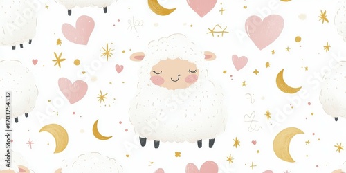 cute, sheep, children, design, pastel, colours, childcare center, decor, whimsical, pattern, smiling, heart, star, crescent, moon, playful, children, bedding, illustration, decorative, print, soft, fabric, digital, art, stationery, wall, animal, theme, cheerful, element, cosy, atmosphere, baby, room, unique, creative, charming, optical, fun, motif, lovely, doodle, style, gentle, aesthetic, childhood, innocence