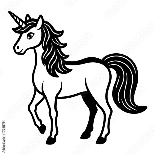 Cute Silhouette of a Unicorn line art vector cartoon illustration