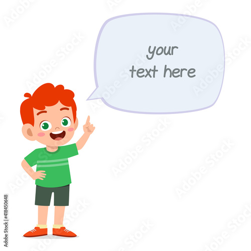 cute smart little boy speak with balloon chat