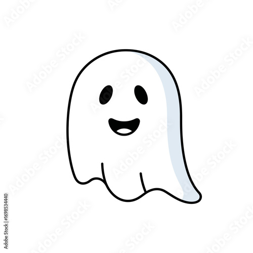 ghost, cute, cartoon, halloween, skittish, fun, character, happy, smiling, friendly, playful, trick or treat, holiday, celebration, mascot, icon, simple, design, illustration, drawing, white, black, outline, childlike, innocent, whimsical, seasonal, autumn, fear, scarey, cheerful, endearing, adorable, sweet, gentle, floating, spirit, phantom, apparition, mischievous