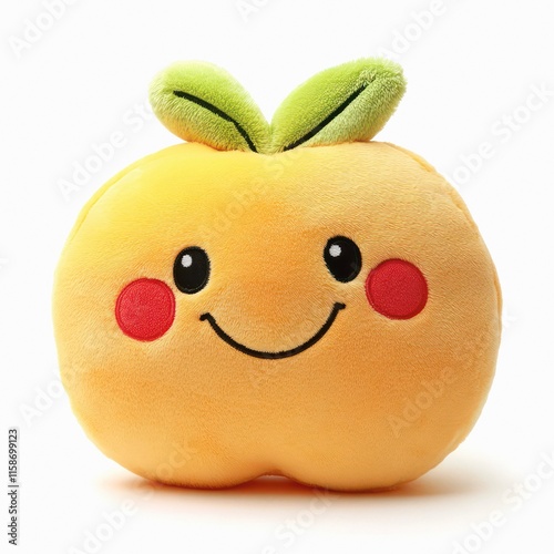 yellow, apple, plush, toy, fruit, food, fluffy, stuffed, children, childhood, cute, soft, isolated, cartoon, face, smile, fun, play