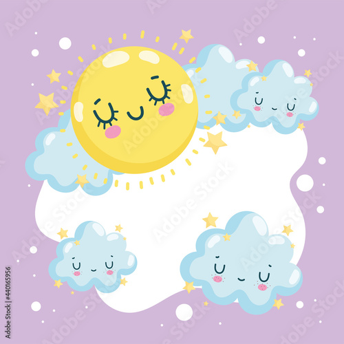 sun, weather, cloud, cartoon, cute, sky, climate, cloud, cloudy, art, funny, happy, sunny, scrapbook, meteorology, sunshine, ornament, forecast, wind, decorative, cold, star, character, vector, illustration, design