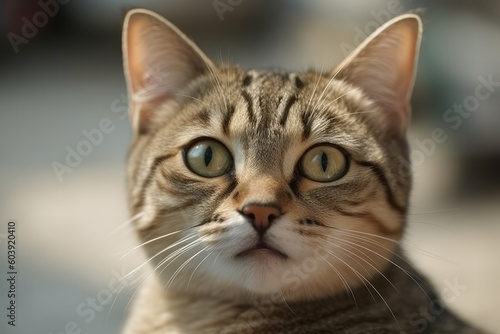 Cute tabby cat with green eyes. Selective focus, generative Ai