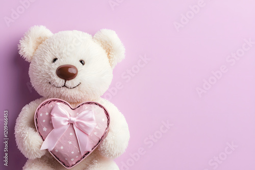 cute teddy bear holding heart shaped box with pink ribbon, perfect for expressing love and affection. This adorable plush toy is ideal for gifts and celebrations